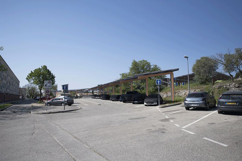 Le double intérêt de ce projet est de créer un parking supplémentaire de 80 places ou de permettre aux habitants des habitats collectifs voisins de stationner leur véhicule à l’ombre et à l’abri de la grêle. Il permettra également d’organiser des événements tels qu’un marché de Noël.